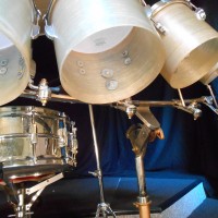 Ludwig 1960s/70s Bass, snare and floor tom. Blaemire set of 7 fiberglass toms on custom Klieg stands. Ludwig cymbal and snare stands, Rogers bass and hi-hat pedal. Cymbals not included. One of 2 identical sets built for Hal Blaine by Rick Faucher and Howie Oliver in 1969. Arguably the most recorded musical instrument off all time. This set was played on literally thousands of the most important pop recordings of the 1970s and 80s. Acquired from Rockin’ Rita’s CA. Blaine sold the set to Rockin’ Rita’s in 1996. Documentation signed by Hal Blaine.